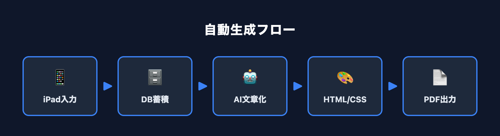 ポイントは、AIに丸投げするのではなく、データの蓄積→構造化→文章化の流れを設計することです。
