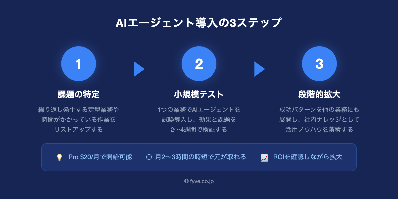 中小企業にとって、AIエージェントは「いつか使うもの」ではなく「今すぐ試す価値があるもの」です。Proプラン月額$20から始められ、月2〜3時間の時短で元が取れます。まずは小さな業務から試して、その効果を体感してみてください。