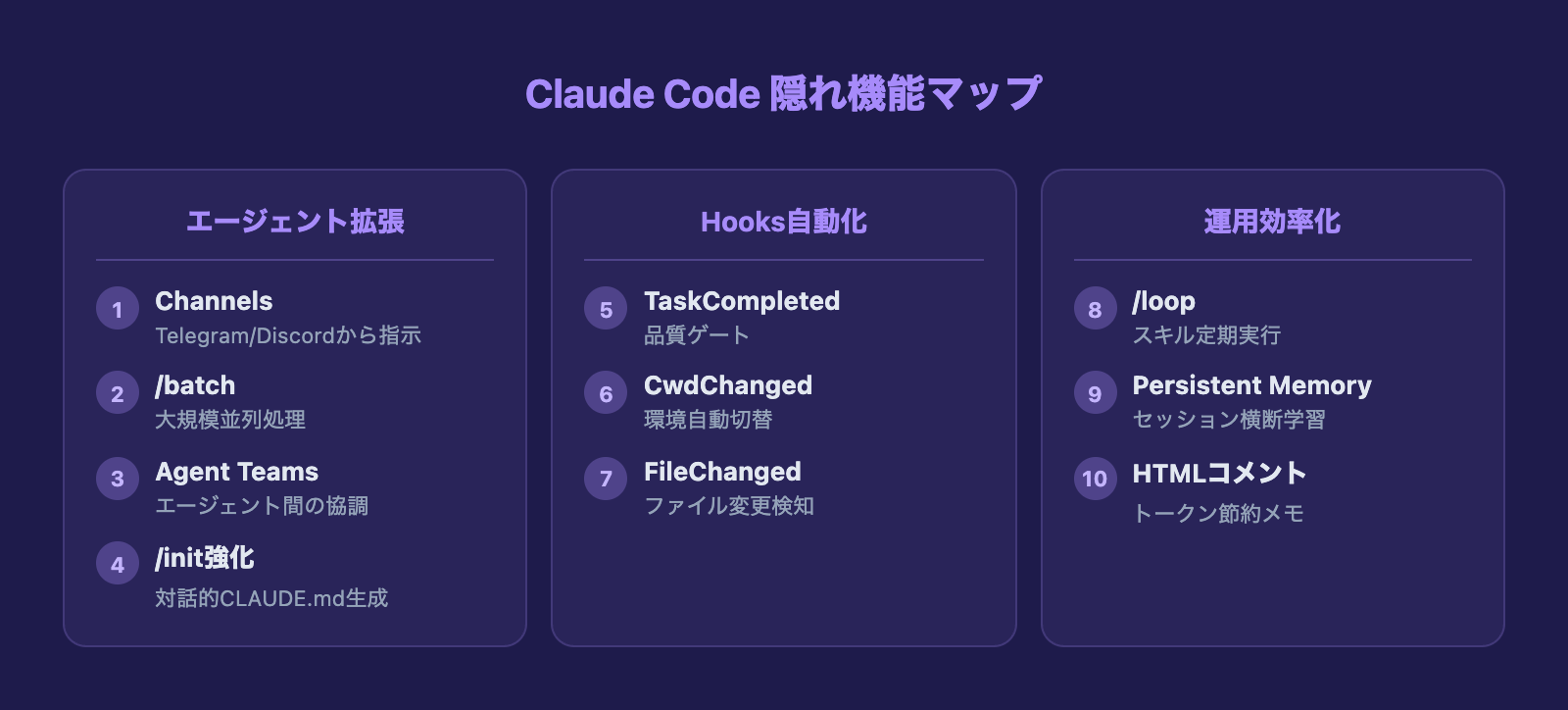 - Channels・/batch・Agent Teamsでエージェントの運用を拡張
