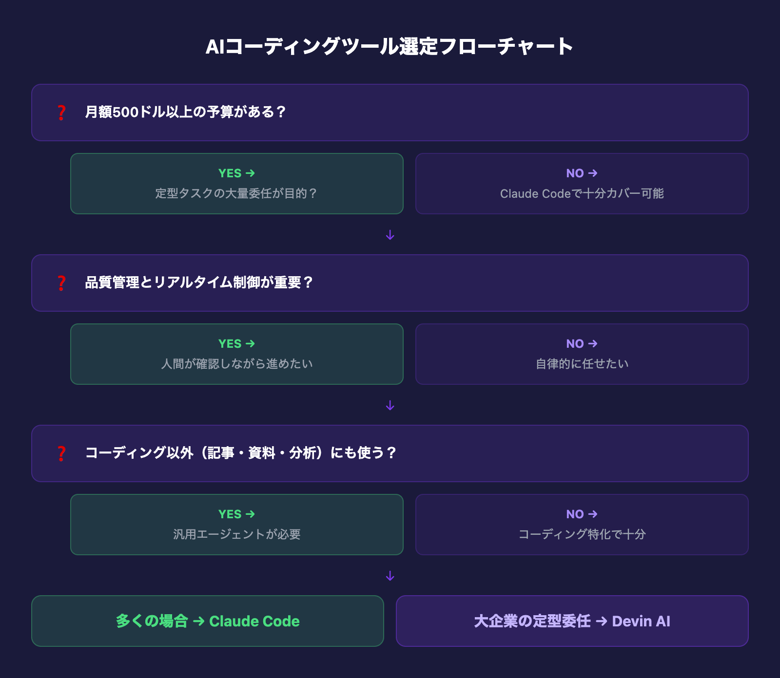 まとめ|Devin AIは先駆者、Claude Codeは実務の主力